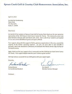 Sun Kool Air Conditioning sponsored the 2019 Spruce Creek Senior Games for Charity.